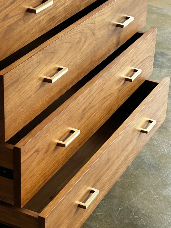Kabinet ini memiliki dimensi total 100 x 50 x 90 cm (P x L x T), dilengkapi dengan finishing kayu jati poles natural yang menampilkan keaslian serat kayu. Masing-masing laci berukuran P89 x D44 x T16 cm, sangat ideal untuk penyimpanan berbagai barang rumah tangga. Gagang kayu model alur menambah nilai keunikan dan kenyamanan saat digunakan.