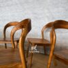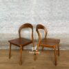 Kursi makan rotan angsa dari kayu jati solid Jepara dengan finishing natural cokelat. Desain lengkung elegan, handmade, dan ergonomis. Cocok untuk ruang makan atau ruang bergaya tropikal.