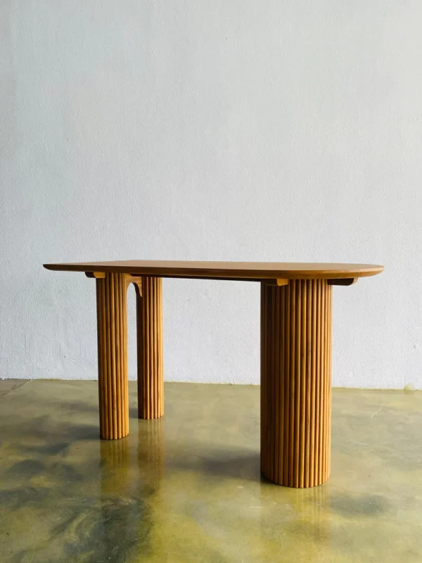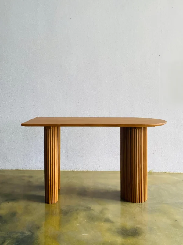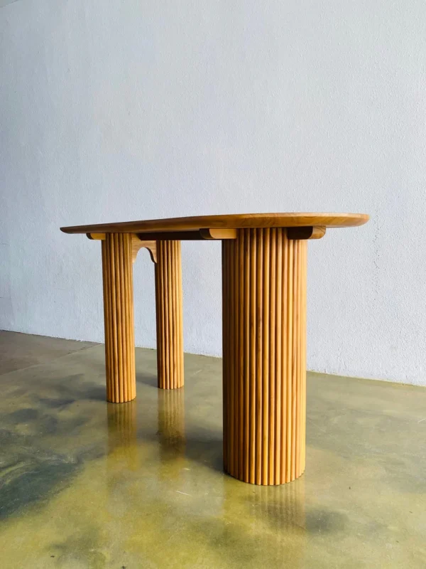 Untuk merawat meja ini, cukup bersihkan permukaan kayu dengan kain lembut dan kering. Jika terkena noda, gunakan kain sedikit lembap tanpa bahan kimia keras. Karena itu, finishing tetap awet dan tampilan natural jati tetap terjaga.