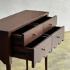 Meja konsul klasik 4 laci kayu jati dengan finishing walnut. Gagang kuningan antik dan desain elegan cocok untuk ruang tamu atau area foyer.