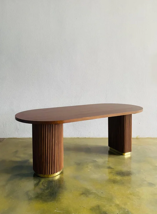 **Meja makan di foto berukuran L180 cm dari bahan Medium Walnut.