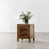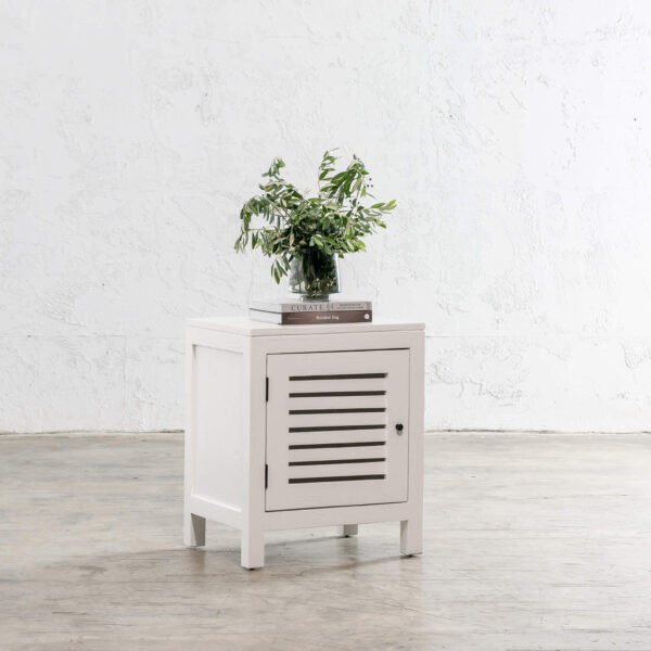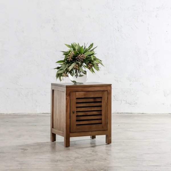 Meja samping tempat tidur memiliki 1 pintu untuk penyimpanan.
