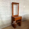 Tempat rias minimalis dari kayu jati solid Jepara, dilengkapi cermin tinggi dan laci penyimpanan fungsional. Desain ramping dan elegan cocok untuk ruang kamar modern.